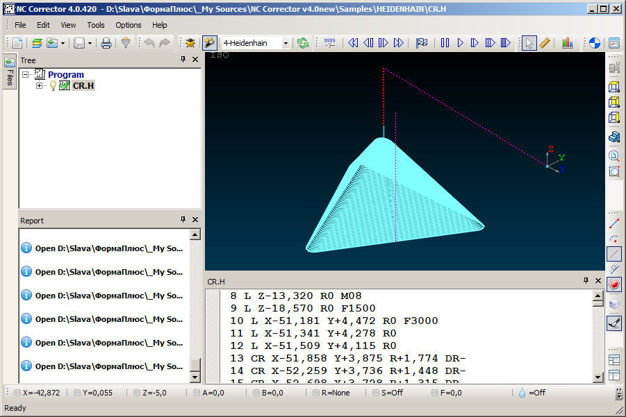 14.02.2013 I have added basic support for Heidenhain systems, it now recognizes both linear and arc movements. It also supports Q-variables. Cycles are not supported yet.