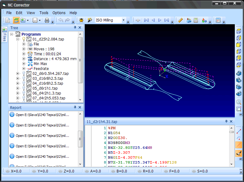 NC Corrector v4.0NC Corrector v4.0 is a free program visualizer editor for CNC machines (G-code). Able to display milling, turning and WireEDM programs. Currently understands basic G and M functions, drilling cycles, subroutines. Automatically recognizes 5 ways to define arcs. Export to DXF, APT format. Shows various information about the program in the tree. (Machine time, path length, MAX MIN trajectory points, number of segments, arcs, etc.) There is a hint for G, M codes when hovering the mouse. Shows path points, arc centers, process stops. Displays equidistant correction. Frame-by-frame navigation, with displaying the current program parameters in the status bar. Display of information about the element, when you click on it with the mouse in the graphics window. There is a fairly powerful measurement mechanism and much more ... Download the latest build NC Corrector v4.0 What's new this build NC Corrector v4.0. Gallery NC Corrector v4.0.